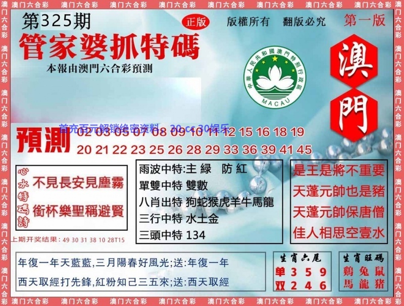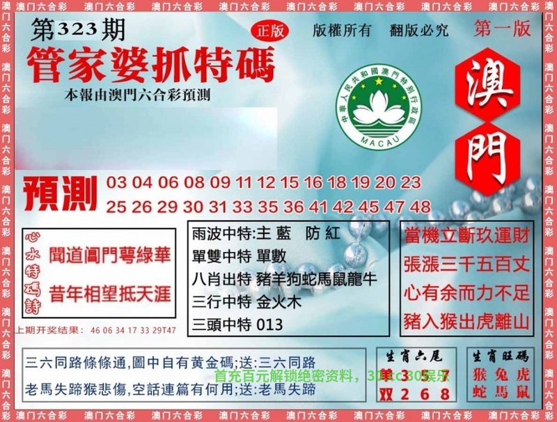 325期:九肖(猴猪鸡狗兔羊蛇马牛)开虎04